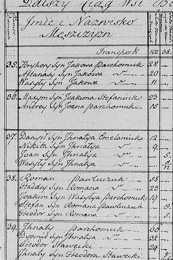 Parchomuk Families in Berezno Census – 1824