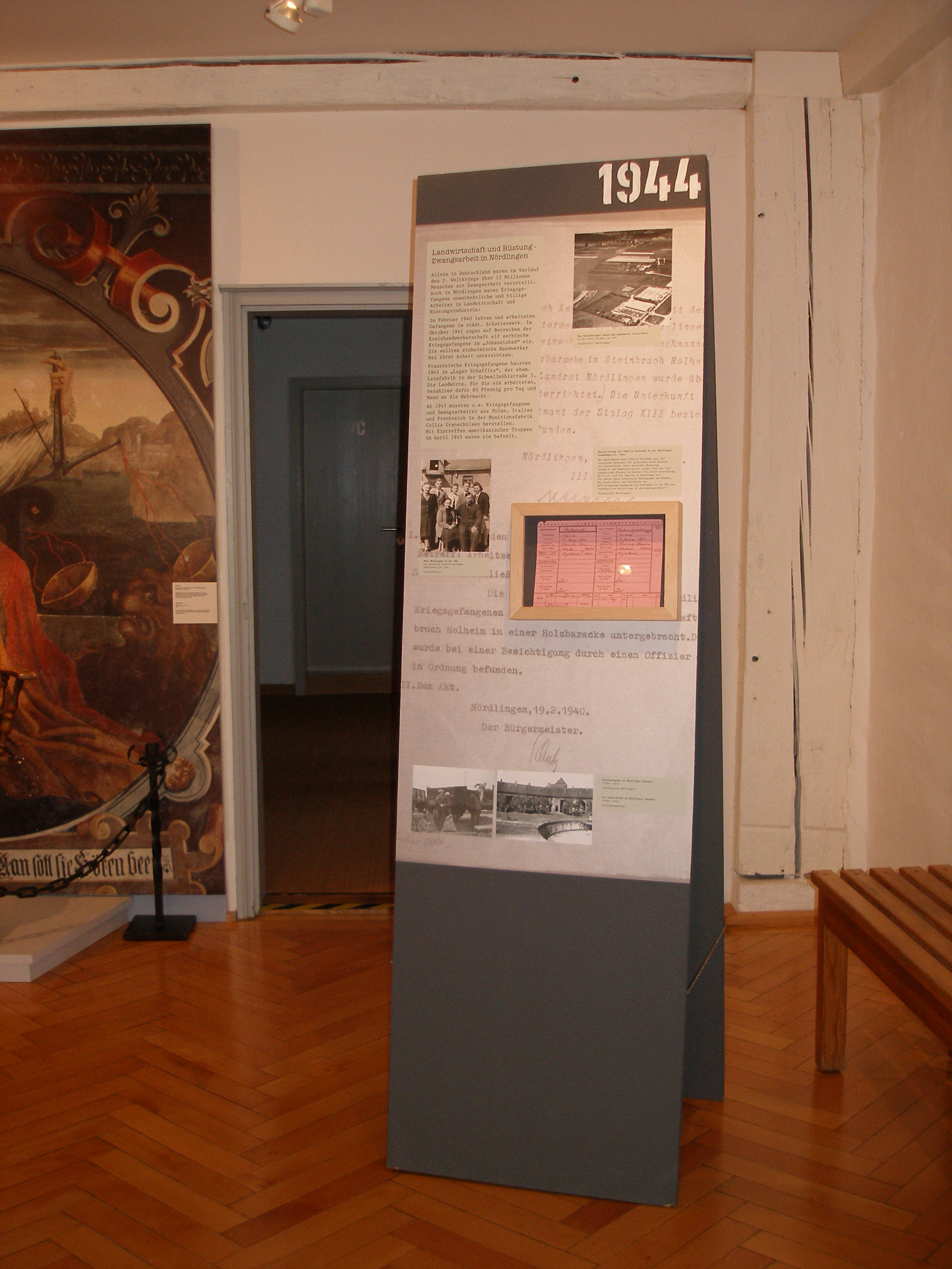 June 2020 — The Nördlingen Stadtmuseum (City Museum) opened a special exhibit on the history of the city during World War II. The exhibit included a section on forced laborers, including a brief account of the Parfomuk family in Nördlingen, with their original registration document and a photograph of the family shortly after the war. The exhibit included a longer account of the Parfomuk family story prepared by Walter’s sons (Paul and Andrew) in a memory book. The exhibit was intended to show the local community and to help educate local school children about another side of the war in their community. Many thanks to Andrea Kugler from the museum for putting together the exhibition and for providing historic photos of Nördlingen and the exhibit photos for this web site. The memory book was also published as a German softcover book by Wilfried Sponsel, Das Ende des Zweiten Weltkrieges und die Jahre des Neubeginns in Nördlingen (1945-1950) [The End of the Second World War and the Years of a New Beginning in Nördlingen (1945-1950)] on April 28, 2020. Many thanks to the Nördlingen City Archives and the author for including the Parfomuk story in this book.