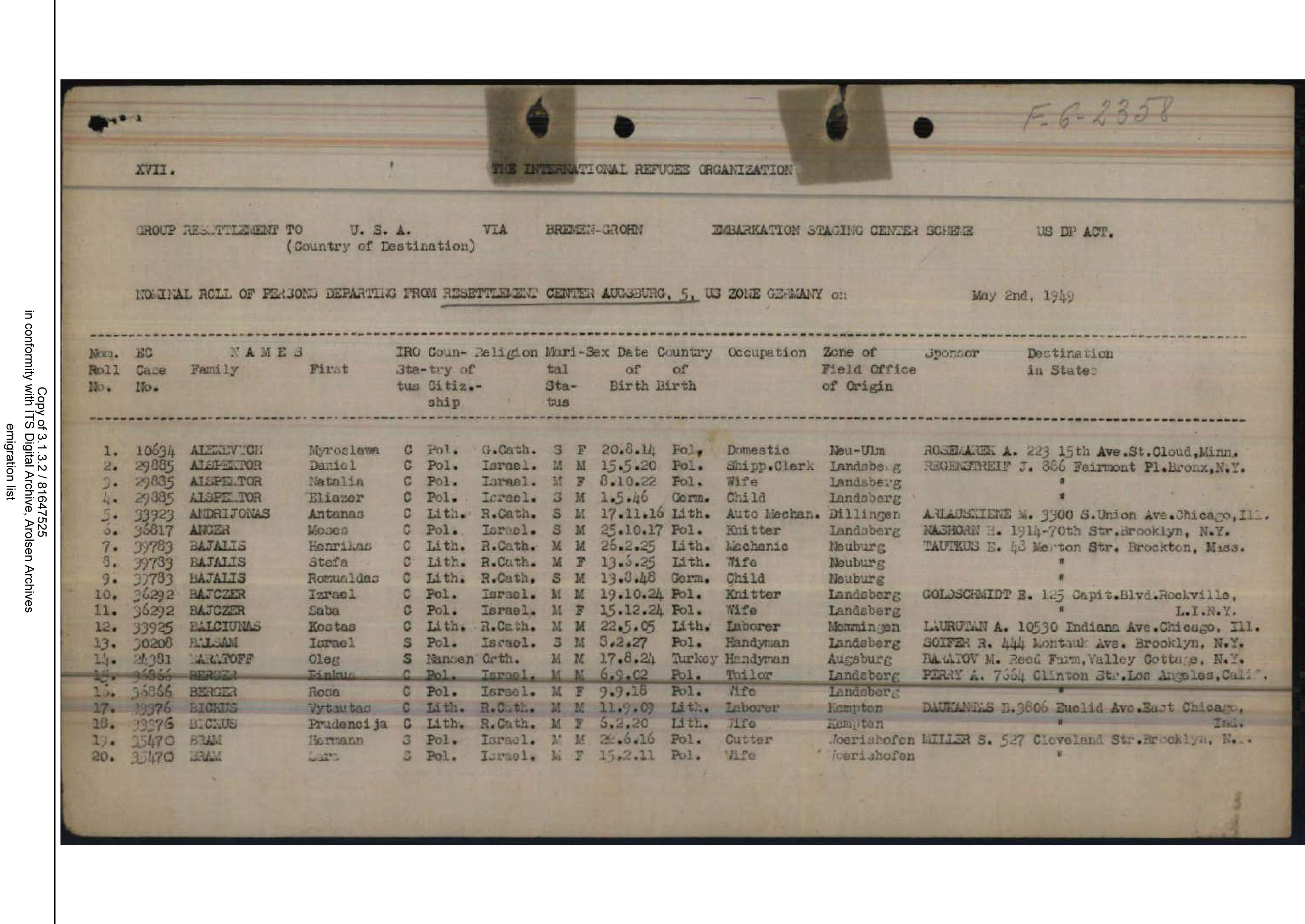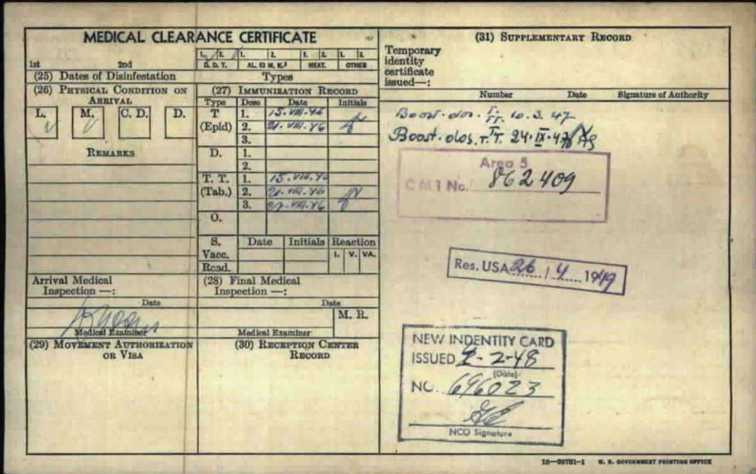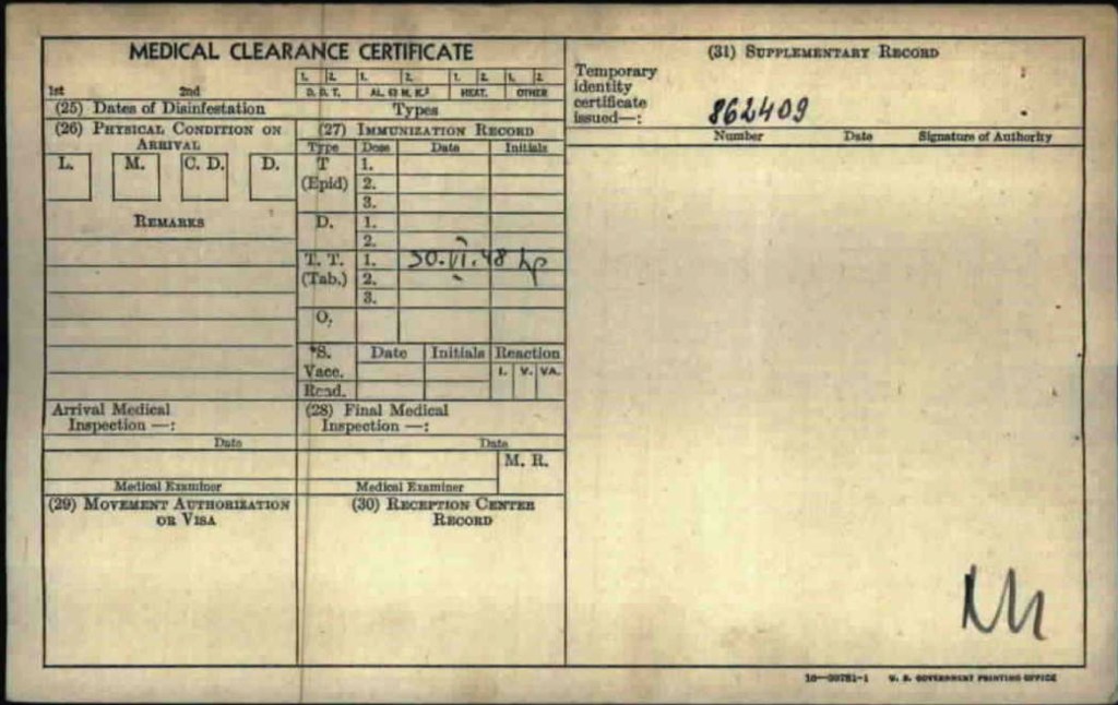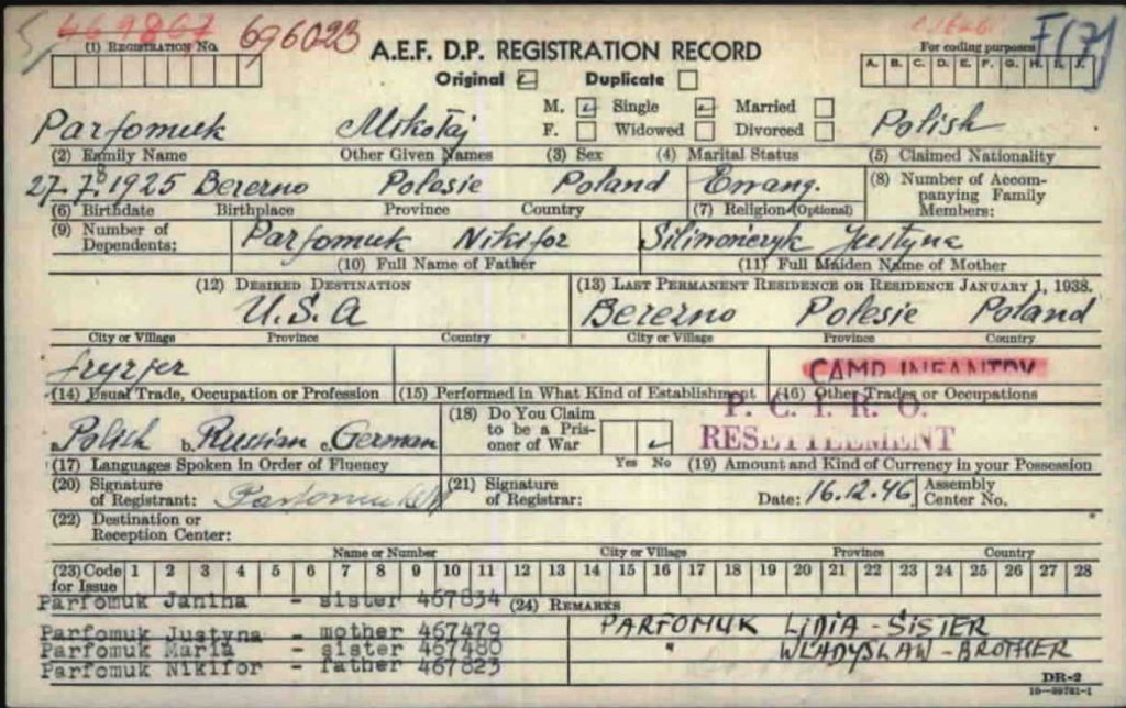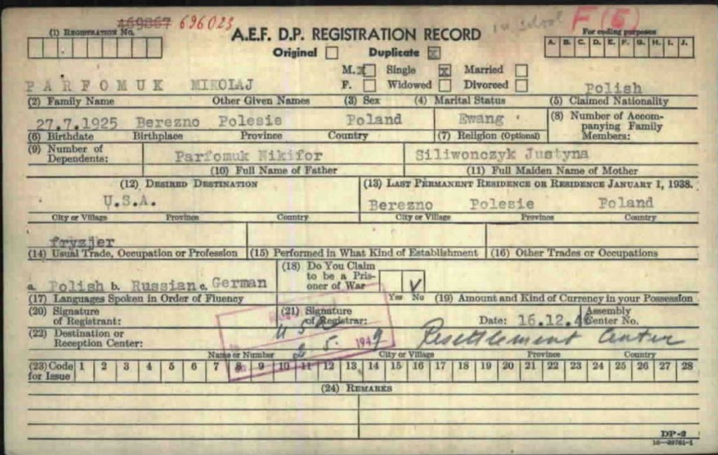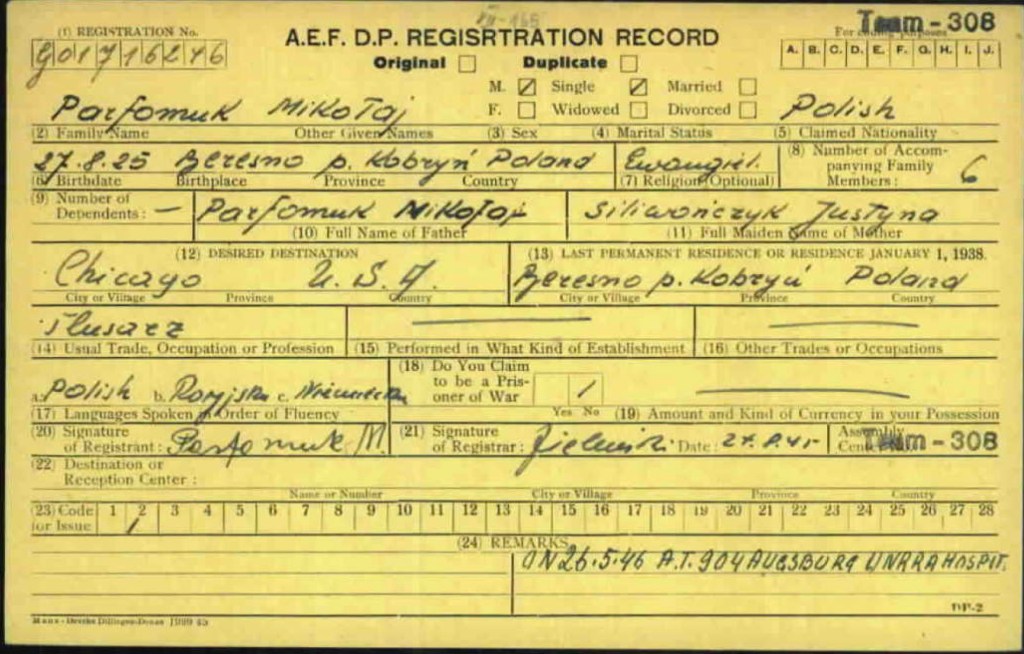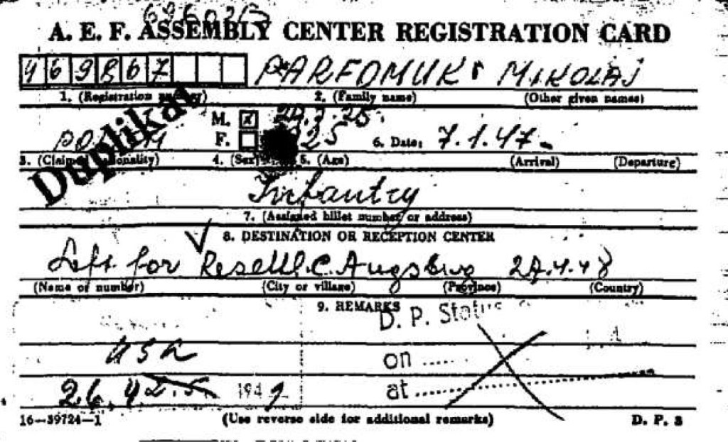 Mikołaj Assembly Ctr. Registration – 1947 (back)